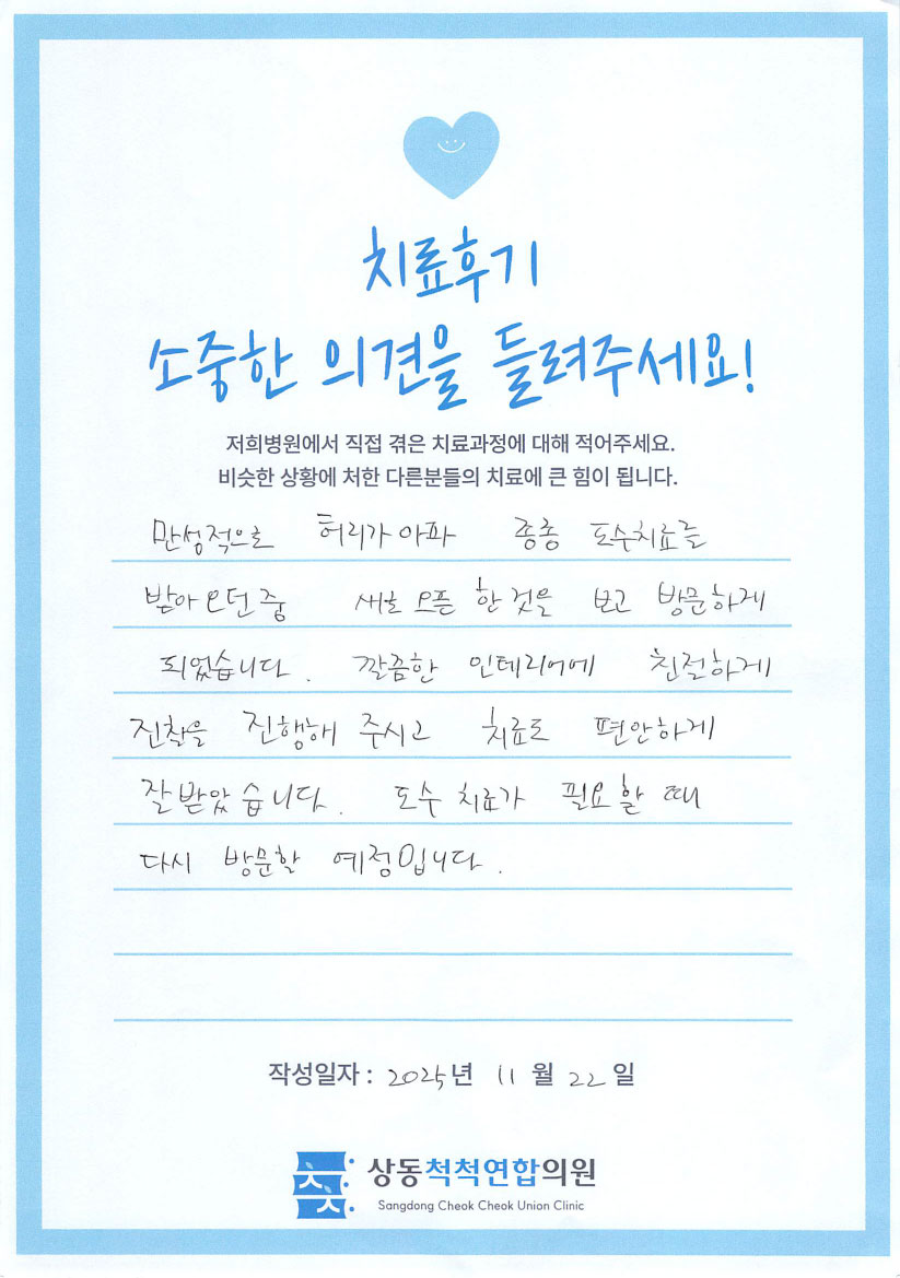 통증이 진행된다면 정확한 검사와 그에 맞는 치료가 필요합니다.